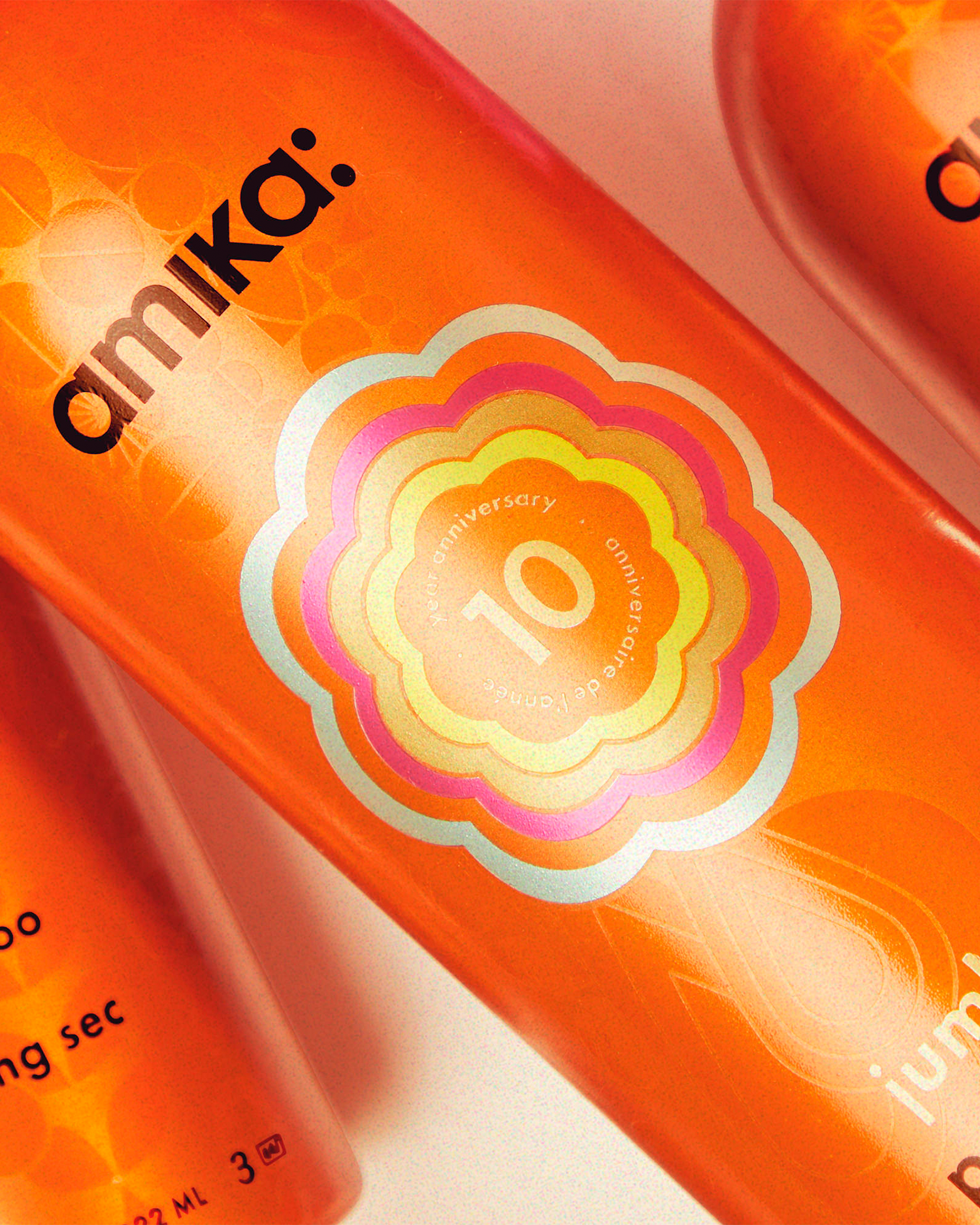 Limited edition packaging design for amika’s 10 year anniversary. [2022]